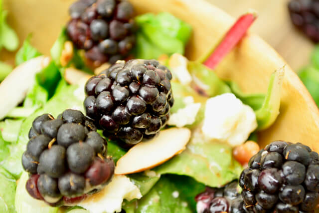 2) Blackberries (of course) – 117 mg of potassium for 1/2 cup. I actually only used  5 or 6 individual berries for my salad so I didn’t even use a full half cup per serving of salad (but you could!). Oh, and rolling in at 4 gm of fiber for a 1/2 cup serving isn’t too shabby either.