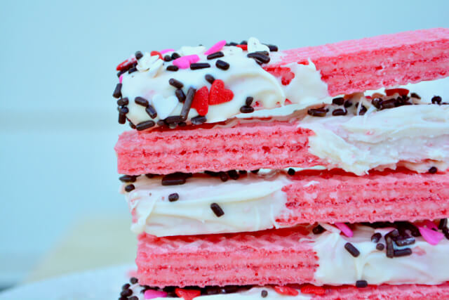 - Place wafers on parchment paper and top with sprinkles. Let dry for an hour. Serve.