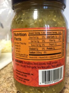 Tomatillo (green) salsa substitute for regular red salsa. Tomatillos are lower in potassium than tomatoes, and with some careful sleuthing we found a great brand with 100mg sodium per serving, more than 50% difference than other brands. The key here is finding a true tomatillo or green chile salsa. Some green salsas are made with green tomatoes, which sad to say, have the same amount of potassium as red tomatoes. Read the ingredients on your label to make sure you get a green salsa made with tomatillos and/or green chiles.